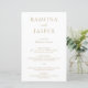 Menu de casamento de ouro falso elegante com um design simples e mínimo. Um layout clássico com seus nomes em letras grandes para uma reviravolta moderna para este estilo tradicional. Um cardápio de casamento perfeito para um casamento formal.