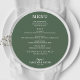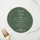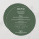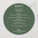 Um cartão de menu redondo jantado em verde (ou qualquer cor) e a inscrição em branco no chic mostra as opções de menu. Perfeito para uma festa de Natal de feriado ou qualquer evento especial com um menu de janto. Escolha QUALQUER FUNDO DE COR, qualquer texto de COR, qualquer letra! Personalize facilmente com o menu e os detalhes do seu janto.