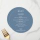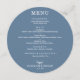 Uma placa de menu redonda janta em azul de barra (ou qualquer cor) e a inscrição em branco no chic mostra as opções de menu. Perfeito para uma recepção de casamento moderna, janto de ensaio de casamento, festa de aniversário ou qualquer evento especial com um janto sentado. Escolha QUALQUER FUNDO DE COR, qualquer texto de COR, qualquer letra! Personalize facilmente com o menu e os detalhes do seu janto.