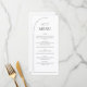 Menu folha única, tamanho: 10,16 x 22,86 cm, papel: Semi-brilho Básico