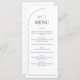 Menu de casamento clássico, em forma de arco simples, preto e branco, facilmente personalizável! Altere as cores da fonte, do plano de fundo e da fonte para se adequar ao seu estilo. Para qualquer ajuda, sinta-se à vontade para nos enviar mensagens via Zazzle. Itens correspondentes estão disponíveis