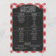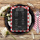 Conclua sua celebração no estilo country com este menu rústico, com um fundo de gingham vermelho e branco e uma frente de quadro negro com letras no estilo giz. Parte da nossa coordenação I Do CHURRASCO Collection, esta design é perfeita para recepções de casamento, festas de noivado, chás de panela, aniversários e chás de fraldas com um tema casual, externo ou de CHURRASCO. Personalize o menu com o seu próprio texto para uma adição fácil, elegante e encantadora à decoração de sua celebração!