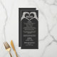 Celebre o seu casamento Halloween ou Gótico com a nossa Carteira Cardíaca das Mãos do Coração, com mãos de esqueleto impressionantes formando um coração no topo. Projetado com amplo espaço para o menu de casamento do seu cheio, o cartão combina uma fonte inspirada no osso para a palavra 'menu' com fontes modernas e elegantes sans-serif para clareza e legibilidade.