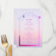 Sun Moon, Rosa Sol Mística Mística Estrelas Astronomia Galáxia Cósmica Celestial Cartões de Menu de Casamento Cards apresentam um sol rosa e roxo, lua e estrelas numa base solar de praia pastel com seus detalhes cardápios no centro em um roteiro de caligrafia roxa moderno. Personalize editando o texto nas caixas de texto fornecidas. Projetado para você pelo Evco Studio em www.zazzle.com/store/evcostudio