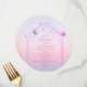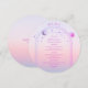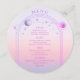 Sun Moon, Rosa Sol Mística, Rosa Mística, Estrelas Espaciais Cartões Menu Cartões de Casamento, apresentam um raio de sol rosa e roxo, lua e estrelas sobre um fundo solar pastel de praia, com seus detalhes cardápios no centro em um roteiro de caligrafia roxa moderno. Personalize editando o texto nas caixas de texto fornecidas. Projetado para você pelo Evco Studio © em www.zazzle.com/store/evcostudio