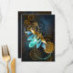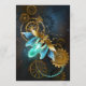 Barbeiro véu com asas transparentes azuis e lâmpada verde sobre fundo vestido, marrom, texturizado. Estilo Steampunk.