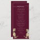 Engraçado Menu Casamento Dinossauro Burgundy e creme de marfim com T-Rex Bride & Groom Menu de Casamento Personalizado Jurássico-Tema Dinossauro Adicione uma reviravolta pré-histórica à sua mesa de casamento com este engraçado menu de casamento com dinossauros, apresentando uma ilustração encantadora de uma noiva e noiva de dino T-Rex. Este cardápio de casamento exclusivo do Jurássico combina design com elegância, fazer perfeito para casais que querem algo original e inesquecível. A design mostra trabalho de arte de dinossauro a aquarelas detalhadas em tons castanhos quentes em um fundo de burgundy rico e na moda romântico para uma aparência na moda romântica, porém fresca e natural. O layout é fácil de personalizar com seus nomes, data de casamento e detalhes personalizados do menu de casamento, todos apresentados em uma na moda de um roteiro moderno de creme de marfim e uma tipografia limpa. Ideal para decoração de casamento de dinossauros, casamentos estranhos ao ar livre ou celebrações rústicas inspiradas na natureza, este menu de casamento impresso é divertido e sofisticado. É um começo de conversa de excelente e o toque perfeito para suas mesas de recepção. Com trabalho de arte exclusiva da ilustradora Catherine Sweetman, este cardápio personalizado de casamento de dinossauros é feito para casais que querem mostrar sua personalidade, humor e amor por todas as coisas dino enquanto mantêm seu casamento maravilhosamente estirado.