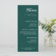 O Menu Casamento "O Menu" apresenta uma seleção sofisticada de delitos culinários contra um fundo verde esmagador que lembra a folhagem verde encontrada em um jardim isolado ou uma camada de floresta tranquila. A matiz verde profunda exude uma aura de opulência e elegância, estabelecendo a palco para uma experiência memorável de jantar. O cabeçalho elegante dá o tom para uma celebração refinada, convidando convidados a se inscrever num banquete pelos sentidos. Personalize este belo menu com seus nomes e data, adicionando um toque personalizado que o transforma em uma manutenção apreciada do seu dia especial. Em meio a um fundo branco sereno, um pássaro solteiro de flor do paraíso agarra o espaço, suas matizes vibrantes capturando a essência da elegância tropical. Nesse cenário, os convidados são convidados a aprofundar a história do amor do casal, com espaço previsto para uma mensagem especial, uma citação sincera ou detalhes íntimos que refletem a jornada do amor e do compromisso compartilhada pelos recém-casados. Este reverso de "O Menu" serve não apenas como um guia prático para os prazeres culinários que aguardam convidados, mas também como um tributo comovente ao vínculo único do casal, garantindo que todos os aspectos de sua celebração de casamento sejam infundidos com calor, alegria e significado pessoal.