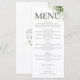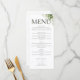 Este menu de casamento elegante com tipografia floral verde pode ser personalizado com suas informações e iniciais de monograma no verso. Projetado por Thisisnotme©
