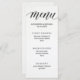 Este cartão de cardápio de na moda apresenta uma caligrafia moderna em um papel de aquarela.