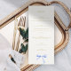 Esta placa lisa chic e trendy off White do menu de casamento apresenta um menu totalmente personalizável juntamente com uma adorável ilustração de fita azul-aquática empoeirada. A parte traseira inclui texto opcional, que você pode editar. Se nenhum texto for preferido no verso, basta deixar esta caixa de texto vazia. Como alternativa, adicione as suas iniciais ou nomes apenas no verso.