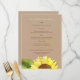 Lindo girassol e folha e fundo castanho claro desenhados em Menus de Casamento. ((Você pode encontrar os essenciais de casamento e favores nesta loja, Bridal Heaven. Entre em contato com ujean4791@gmail.com para obter trabalho personalizado e/ou coordenar papelaria de casamento.)