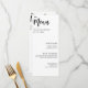 Apresentando o Menu Casamento Duplo e a Lista de Bebidas da Coleção de Elegância - uma oferta refinada e abrangente que mostra suas seleções culinárias e de bebidas com sofisticação e estilo. Do lado da frente, admirar a elegância de um cardápio de casamento totalmente personalizável. As linhas limpas e a estética moderna da Elegance Collection estabeleceram o palco de uma experiência de jantar excepcional. O menu é cuidadosamente categorizado em Ataques, Cursos Principais e Desserts, permitindo que você forneça uma visão geral concisa, mas abrangente, das ofertas deliciosas. Vire o cartão e descubra uma apresentação igualmente refinada da sua Lista de Bebidas Alcoólicas. Cocktails, Vinhos, Espíritos e Cervejas são apresentados elegantemente, cada um com uma seleção curada de três opções. Como parte da Coleção de Elegância, este Menu de Casamento Duplo e a Lista de Bebidas é totalmente personalizável para garantir uma estética coesa e elegante que se alinha perfeitamente ao seu estilo único, criando uma sinfonia visual que define o tom para a sua experiência culinária e de bebidas. Sofisticado e deliciosamente abrangente, o Menu de Casamento Duplo e a Lista de Bebidas da Coleção de Elegância oferecem uma apresentação integrada das ofertas culinárias e de bebidas da sua celebração. É uma adição refinada à sua papelaria de casamento, garantindo que cada detalhe contribui para a elegância e sofisticação gerais do seu dia especial.
