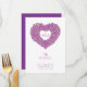 Mauve roxa, primavera verde e janto de casamento branco. Edite este menu de 4 cursos com o seu próprio texto de opção de refeição. Flores tulipas simples, mas modernas, desenhadas à mão e folhas em forma cardíaca com monograma no design central. © Original hand botanical desenho e design por Sarah Trett para www.mylittleedenweddings.com exclusivamente em zazzle.