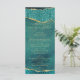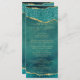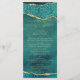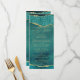 Celebre em estilo com estes modernos e muito modernos cartões de cardápio de casamento. O design apresenta uma turquesa de cor d'água e um fundo de agitação dourado com texto de letra de script manual correspondente. Esta design é fácil de personalizar com a sua redação de eventos especiais e os seus convidados ficarão entusiasmados quando virem estes menus fabulosos.