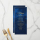 Este elegante menu romântico de casamento mostra um dramático universo azul com estrelas. Você pode adicionar os detalhes do menu clicando no link personalizar. Isso faz parte de uma linda suite de casamento com cartões de números de mesa correspondentes, cartões de posição e muitos outros itens.
