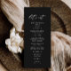 Perfeito para um casamento preto ou um sofisticado tema de casamento preto e branco. Ideal para aqueles que buscam um tema de casamento preto e branco elegante, complementa um casamento escuro e sangrento ou uma ambição de casamento romântica escura. Quer planejando um tema de casamento negro ou um casamento clássico, este menu adiciona um toque elegante clássico e eterno, assegurando que seu casamento branco preto é uma experiência de casamento verdadeiramente clássica.