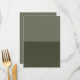 Este cartão de menu verde musgo com divisão inferior apresenta uma metade superior fosca elegante e uma seção inferior ricamente texturizada. O design oferece um ritmo visual que é ao mesmo tempo moderno e pronto para eventos. A área superior é perfeita para títulos de eventos formatados de forma limpa, listas de jantar ou atribuições de mesa, enquanto a textura salpicada na parte inferior adiciona um toque sofisticado e artesanal.