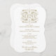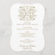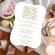 Cartões elegantes e formais de janto de casamento apresentam espirais decorativas e floresces que moldam a design. inspirada na safra. Cores de ouro branco e antigo. Personalize com os nomes da noiva e do noivo, data do evento e detalhes do menu.