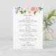 Elementos: elegante várzea floral com rosas e hydrangia. Fontes de serif clássicas com acentos de script casual. Cores: rosa, branco, marfim, verde, esfregado, salmão. Temas: elegante, moderno, botânico, primavera, verão, jardim, país, rústico, capricho. Coleção: Vintage Blush Pink & Ivory Rosa Garland Coleção de Casamentos Tipo: Menu