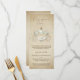 Este menu personalizado apresenta um tema mágico e encantador de conto de fadas da Cinderela. O fundo é um design de papel de pergaminho rústico, de aparência antiga. Uma imagem de uma carruagem princesa no estilo de uma abóbora é colocada perto do centro, acentuada por estrelas. A introdução clássica do conto de fadas, "Era uma vez", é impressa no topo em uma bela fonte de roteiro. É perfeito para um brunch, jante, ou outra ocasião mágica.