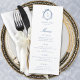 Menu Vintage Crest Monograma Blue Casamento Botânico