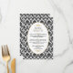 Estes cartões são perfeitos para qualquer casal planejando uma celebração romântica de casamento vintage. O design apresenta um fundo preto e branco úmido, com uma estrutura decorativa de borda dourada, com um floral ornamentado, e é finalizado com uma redação elegante em preto e ouro. O design simples pode ser personalizado para se adequar ao seu evento especial e será o menu perfeito para qualquer festa antiga, incluindo chás de panela, noivados, chás de casamento, festas de aniversário e muito, muito mais.