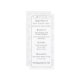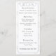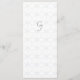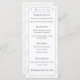 Design apresenta um plano de fundo maravilhoso da imagem de um local branco. Uma delicada prata floresce, melhora cada esquina. Um título elegante para um menu de casamento é exibido em uma fonte nupcial elegante. O formato adequado para um menu de casamento é apresentado abaixo em impressão claro. Todo texto é personalizável. O reverso tem o mesmo fundo do monograma da noiva e do noivo. design de excelente para o tema clássico da noiva "Old Money". Projetado para coordenar com a Vintage White Lace Católica Wedding Suite.