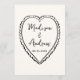 Share your reception menu in style with this whimsical wedding menu card designed to coordinate with playful, modern wedding stationery. The front of the menu features “Menu” displayed in a handwritten black script with your wedding menu details shown below on a light cream background, creating a clean and charming look for reception tables or place settings. The back of the wedding menu card features a hand-drawn black heart surrounding the couple’s names and wedding date, adding a fun and personal finishing touch. Ideal for couples who love modern, lighthearted stationery, this customizable wedding reception menu helps guests easily view the menu while tying together your coordinated wedding décor.