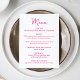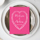 Share your reception menu in style with this whimsical wedding menu card designed to coordinate with playful, modern wedding stationery. The front of the menu features “Menu” displayed in a handwritten pink script with your wedding menu details shown below on a white background, creating a bright and love-filled look for place settings or reception tables. The back of the wedding menu card features a hand-drawn white heart surrounding the couple’s names and wedding date for a sweet and personal touch. Ideal for Valentine’s weddings, romantic celebrations, and couples who love fun, modern stationery, this customizable wedding reception menu adds charm while helping guests easily view the menu at your reception.