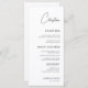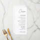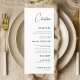 Menu branco minimalista com um nome de convidado de script personalizado, projetado para servir como um cartão local e guia de jantar. Perfeito para casamentos, jantas de ensaios, chás de panela ou festas de noivado, essa versátil carta combina personalização com elegância moderna. O layout preto-e-branco e a tipografia quic criam um detalhe de na moda eterno que aprimora as configurações de mesa para qualquer celebração sofisticada.