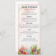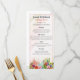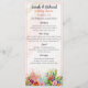 Celebrate your special day with this charming watercolor wildflower wedding dinner menu. Featuring vibrant spring garden florals and a soft splash of watercolor at the bottom, this elegant vertical layout beautifully displays your appetizers, main course, desserts, and beverages. Perfect for outdoor, vineyard, garden, or rustic weddings, this menu design pairs effortlessly with our matching wedding invitations, RSVP cards, signage, and other stationery. Personalize with your own menu details and wedding date to add a polished and cohesive touch to your reception tables. Ideal for seated dinners, cocktail receptions, and buffet-style celebrations. A timeless keepsake that guests will adore!