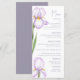 Menus for a modern wedding. Delicate irises in soft lilac shades are depicted against a pastel background, creating an atmosphere of sophistication and tranquility. The design is modern and airy, perfect for a stylish, romantic wedding.