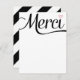 Envie alguma correspondência de na moda com estas notas de agradecimento apresentando a palavra francesa "merci" em um roteiro de troca. A parte de trás do cartão é tão interessante com um padrão de risca ousado.