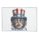 Celebre o 4 de julho em estilo ousado com este glamouroso design patriótico. Apresentando uma mulher estilizada vestindo óculos de sol vermelhos, brancos e azuis, um chapéu de bandeira, e o texto "Merica", é a impressão para as vibrações do Dia da Independência e o orgulho americano.