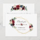 Design de cartão único e elegante com belos buquês de flores em aquarela merlot, burgundy e azul marinho, moldura dourada falsa, divisor floral, bela caligrafia, em um fundo branco. Use a ferramenta Personalizar para adicionar suas informações, alterar fontes, cores e plano de fundo. Para itens correspondentes, visite minha Coleção Floral Merlot, Azul Marinho Dourado.