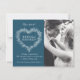 Maldita coroa botânica, coroa coroa coroa coroa azul e branco, cartaz de Natal casado com sua própria foto para um lado. Personalize com sua própria mensagem convidando para uma festa ou um evento de casamento postado, nomes e sua foto. Ideal enviar um pouco de amor como conterrâneo é um símbolo de amor e tem associações com vitalidade e boa saúde. Desenho de linha original e design por Sarah Trett para www.mylittleedenweddings.com apenas no Zazzle.