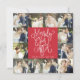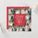 Divulgue o amor e exiba suas fotos de casamento nesta época de festas com este cartão de felicitações moderno e elegante com colagem de fotos para as Festas de Just Married. Perfeito para o casal recém-casado usar como anúncio de casamento ou cartão de agradecimento durante as festas. Este cartão faz bom uso das suas belas fotos de casamento, apresentando uma grade de colagem de 12 fotos única e contínua, combinada com uma tipografia cursiva branca festiva que diz "Merrily Ever After". No verso, adicione sua própria mensagem personalizada, que é destacada por uma moldura divertida de neve/flocos de neve. Cores personalizáveis.