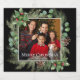 This Merry Christmas Photo Wreath Botanical Sparkling Wine Label features a photo of your choice surrounded by a wreath with holly with berries, pine branches, pinecones, and eucalyptus, with your names and year. This sparkling wine label is a great addition to your Christmas holiday party!