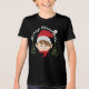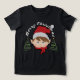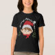 The design captures the joyful and festive spirit of Christmas, using bright colors and a playful design. The child, dressed as a fairy, wears a red Santa hat and a red scarf. On either side of the fairy are two abstractly designed Christmas trees adorned with colorful decorations and glittering dots. The words "Merry Christmas" are written in white, circularly carved letters.