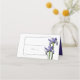 Este elegante design floral apresenta íris roxos. Os belos íris roxos com seus caules verdes são colocados sobre uma borda geométrica fina. No verso do cartão de lugar, os nomes da noiva e do noivo são da cor correspondente ao roxo da flor da íris. Este é o perfeito design de casamento floral ideal para qualquer tema de casamento. A Elegante flor da íris coloca design com elementos modernos. Os convites de casamento e outros artigos de papelaria também estão disponíveis. Fácil de personalizar com seus detalhes. Escreva à mão os nomes de convidados e o número da tabela no espaço fornecido.