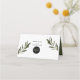 Esta design apresenta folhas e ramos de oliveira. A bela paisagem das folhas elogia a elegante forma negra e moderna do círculo ao redor da data do casamento no verso do cartão de lugar. Uma fusão perfeita do moderno e chic com cores rústicas da azeitona. Verde-oliva, preto e branco são uma combinação perfeita para um casamento temático mediterrânico. Design único do lugar do casamento com elementos modernos. Os convites de casamento e outros artigos de papelaria também estão disponíveis. Fácil de personalizar com seus detalhes. Escreva à mão os nomes de convidados e o número da tabela no espaço fornecido.
