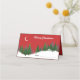 Um cartão de escolta para a sua festa de Natal! Este cartão vermelho de escolta tem uma cena de Natal, cheia de lua crescente, árvores de abeto, neve no chão, e até mesmo um veado. As palavras "Feliz Natal" são perfeitamente personalizáveis, e o nome também. Você pode optar por escrever os nomes do seu estilo manuscrito convidado ou digitá-los antes de colocar o cartão no seu carrinho. Feliz Natal!