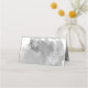 Placa de lugar com escolta dobrada de cinza abstrato com cor d-d-água moderna, com casamento no inverno dobrado de cor d-d-água apresentando um talão pintado manualmente com textura em tons de cinza, árvores em branco com neve, flocos de neve e texto em branco.