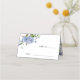 Um cartão de lugar para o seu casamento com a ilustração aquosa de flores de pénia azul com verde.