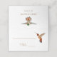Cartão de casamento de pássaros-beija-flores com pássaros-peludos. Personalize o cartão de lugar com os nomes da noiva e do noivo e a data do casamento.