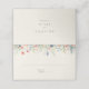 Este cartão de casamento de flores silvestres radiantes é perfeito para um casamento rústico. O design apresenta flores cor-de-rosa, roxa, esbranquiçada, amarela, marinho azul, verdes e campo selvagem reunidas em buquês florais sem costura e deliciosos, evocando a beleza natural. Personalize a parte de trás do cartão de lugar com os nomes da noiva e do noivo e a data.