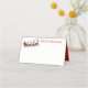 Este cartão de lugar dobrado é mostrado em branco básico com um interior vermelho com Papais noeis festivos de Natal e impressão de renas. Personalize este item ou comprar como está.