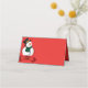 Este cartão de lugar dobrado é mostrado em cor vermelha com um impressão de boneco de neve festivo de Natal. Personalize este item ou comprar como está.