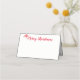 Este cartão de lugar dobrado é mostrado em branco básico com uma saudação festiva de Natal Feliz com impressão gráfico de chapéu de Santa. Personalize este item ou comprar como está.